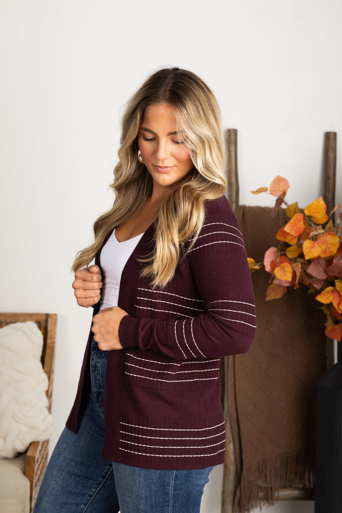 Stitch Stripe Cardigan Plum
