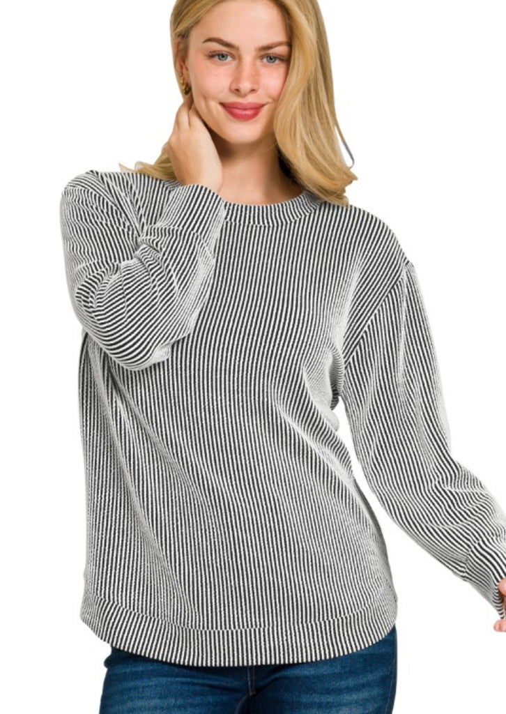 Presley Ribbed Long Sleeve Top Black Stripe