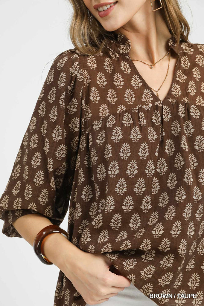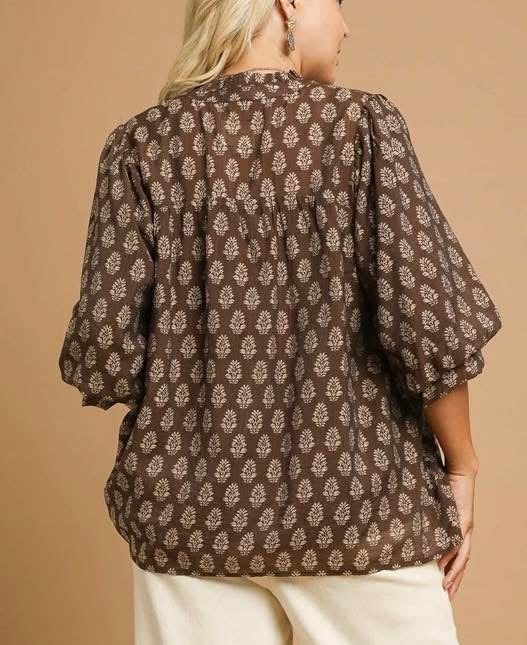 UMGEE Coffee & Cream Floral Top