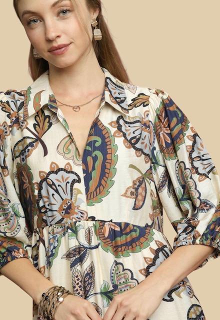 UMGEE Cream Boho Floral Dress