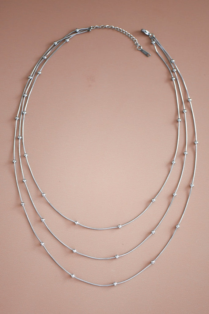 Stainless Steel Layered Ball Chain Necklace. Multi Strand Stainless Steel Necklace.