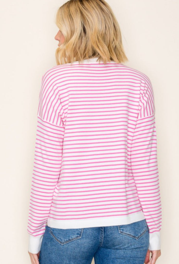 Everyday Relaxed Fit Stripe Sweater Pink