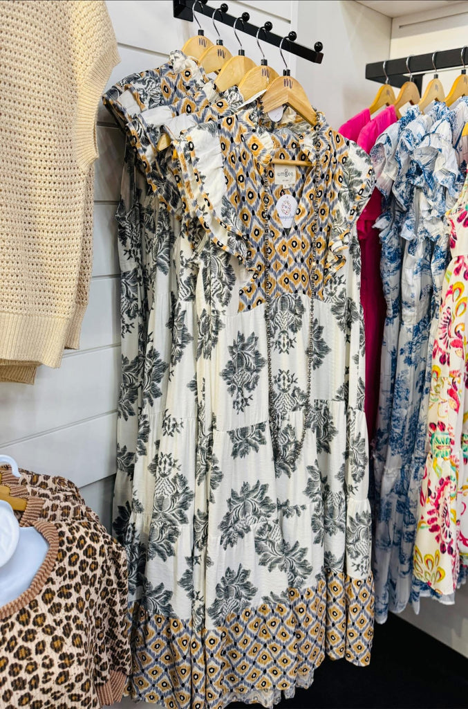 These mixed prints are the perfect spring duo! This charming midi is ready to carry you through all events!