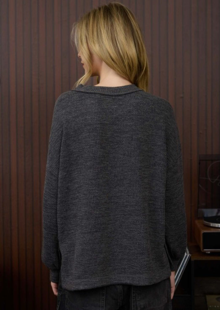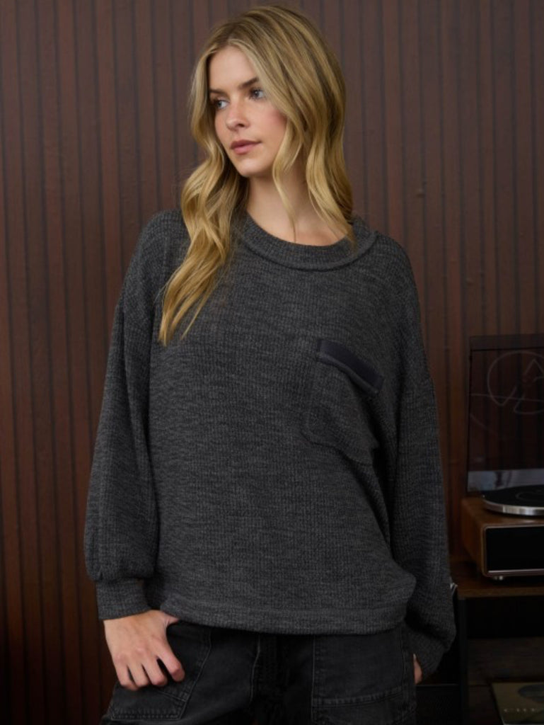 Crew Neck Pocket Sweater Charcoal