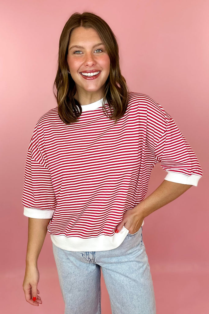 Stripe Contrast Top Ruby Red