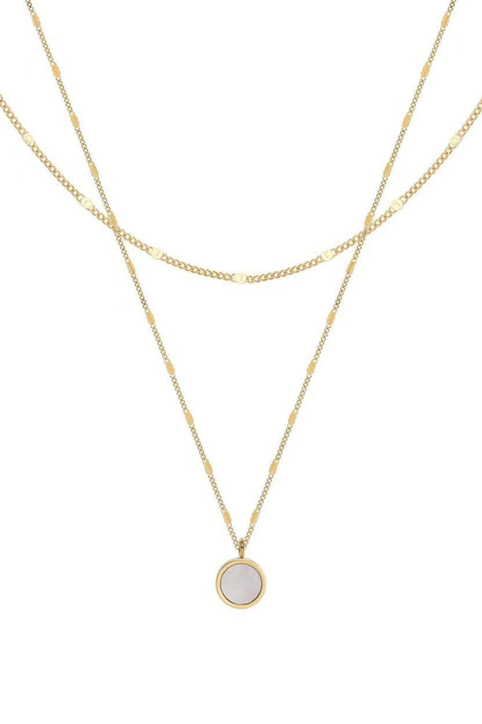18K Gold Plated S.S. Round Pendant Layered Necklace