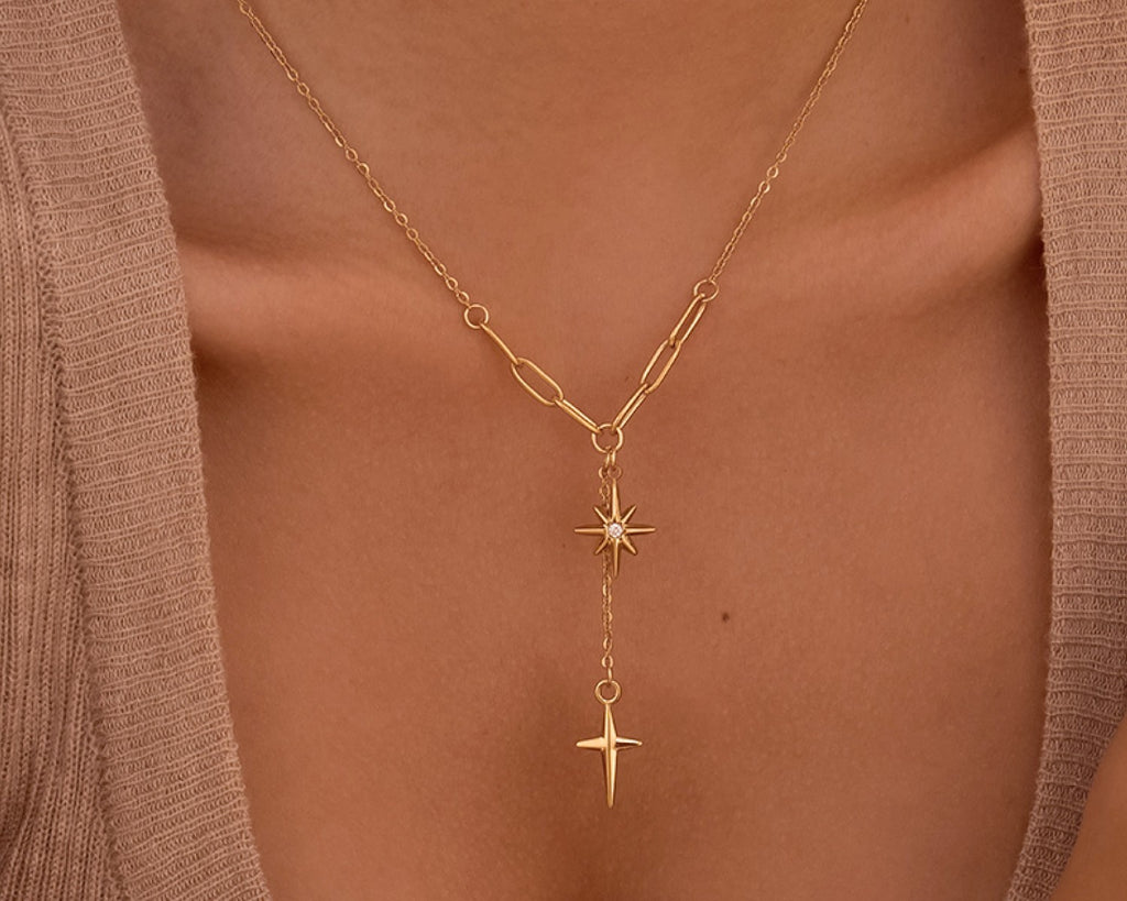 18K Gold Plated S.S. Star & Cross Necklace