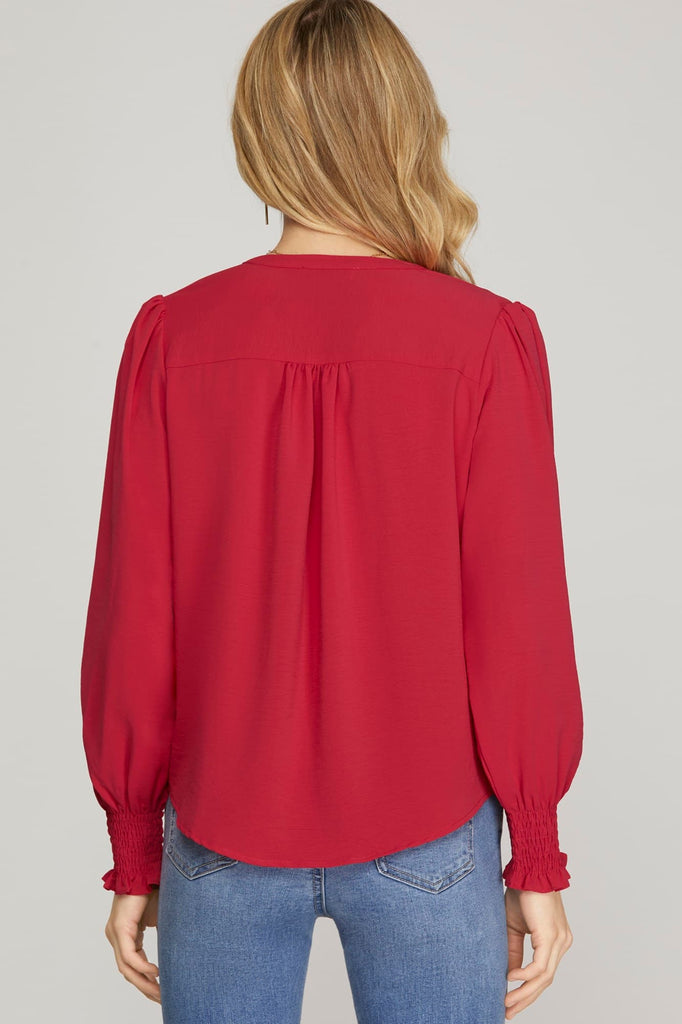 LONG SMOCKED SLEEVE FRONT PLEATS TOP