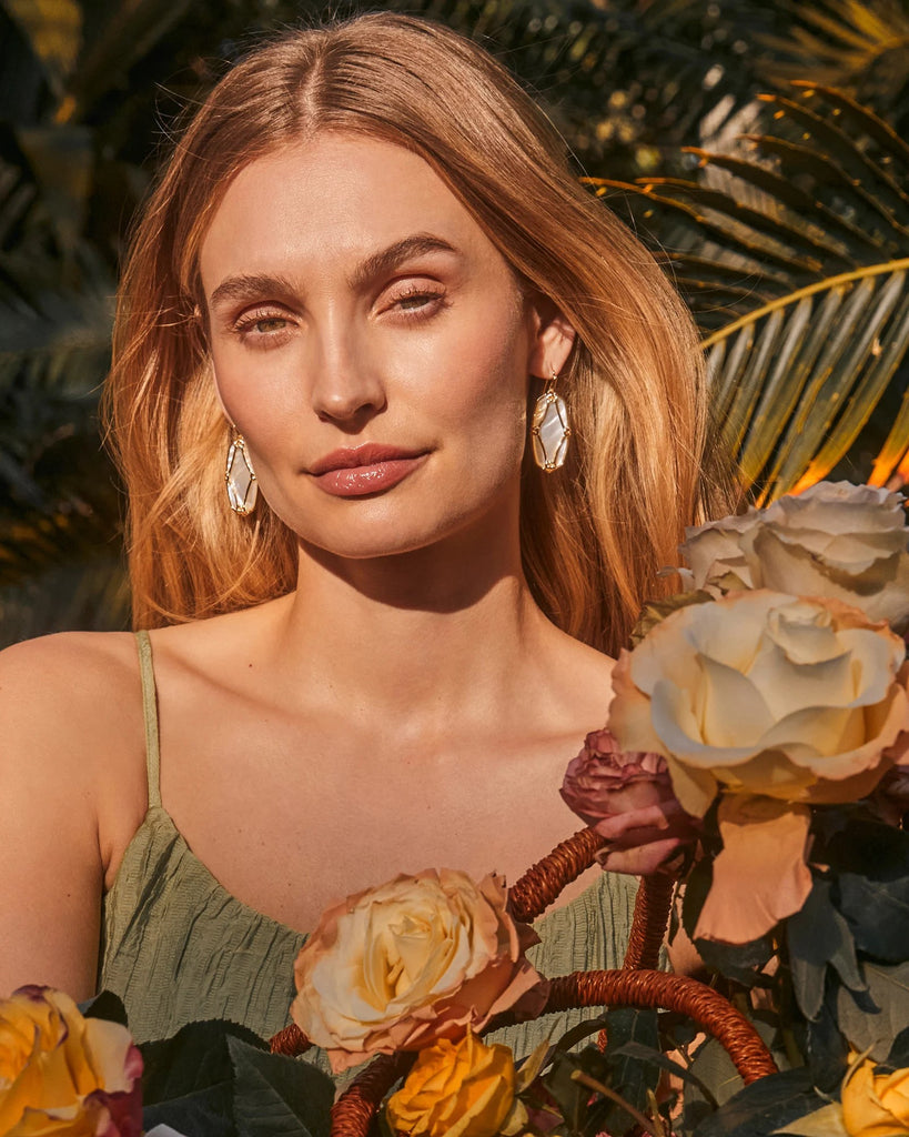 Our iconic eye-catching earrings have a new artistic twist in the Elle Lattice Frame Gold Drop Earrings in Ivory Mother of Pearl. With a new metalwork technique inspired by the texture of lace, these earrings were made to stand out with a bold elegance and beautiful colors that fit into any collection.