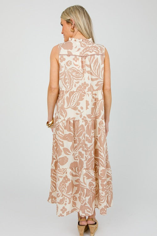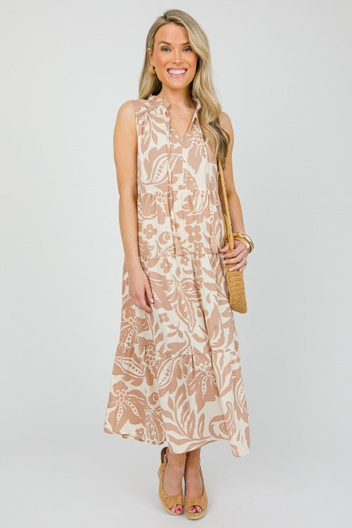 UMGEE Two Tone Floral Midi Dress Latte
